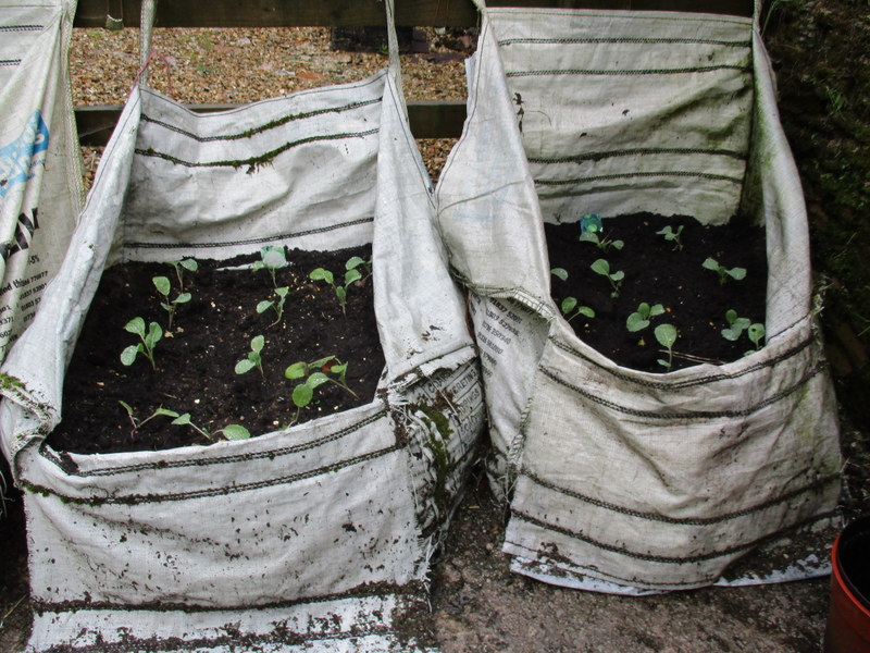 And here are winter cabbages and cauliflowers planted out in re-used builder’s bags, not ideal raised beds, but they work and we have rhubarb and have had two year’s potatoes from them – well, a third year growing from those we failed to harvest twelve nonths earlier.